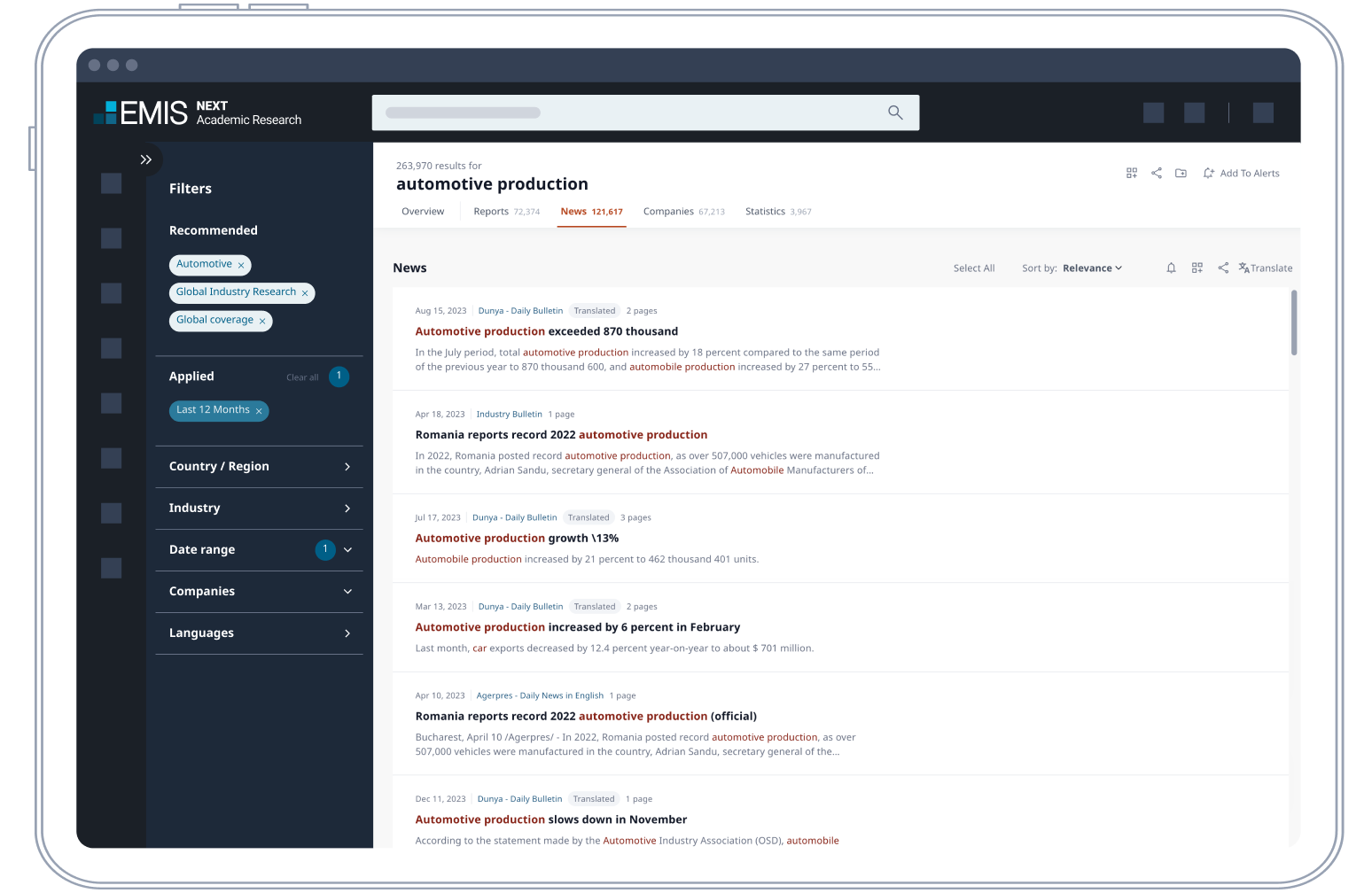 With reliable information from the most trusted sources on emerging markets in EMIS, students and lecturers can access insightful and hard-to-find data on companies, sectors, and countries.