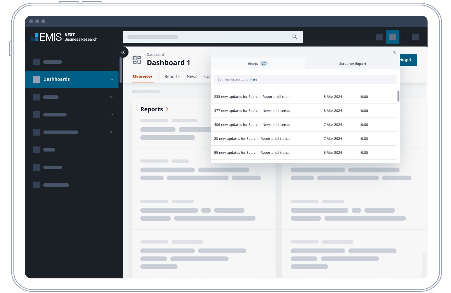 Effortlessly track sectors, companies or sources on demand or on a regular basis with email alerts or in your saved searches